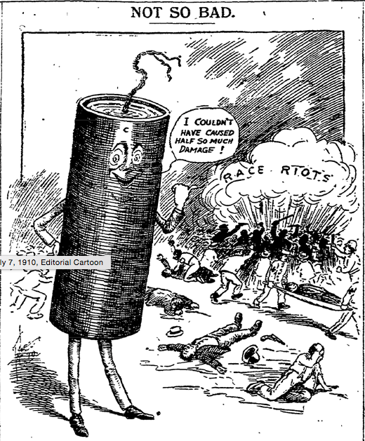 The fight was billed as the fight of the century and with all the racial tensions that surrounded all alcohol was banned in the arena in Reno . This was also one of the first fights where pre recorded rights had been sold, with the view of packing out cinemas to show the world “the great white hope ” taking back the world title. Well Johnson didn’t read the script,with his counter punching style he nulled Jeffries ,and after having him down twice Jeffries corner threw n the towel , an action that had reverberation across America . The riots that followed Johnson’s victory saw destruction and violence unseen since the Civil War . There was actually murders attributed to Jack Johnson taking the picked man apart ,Infact it got that bad US congress passed a law banning the recordings being showed ,a law that would be in place for the next 20 years .